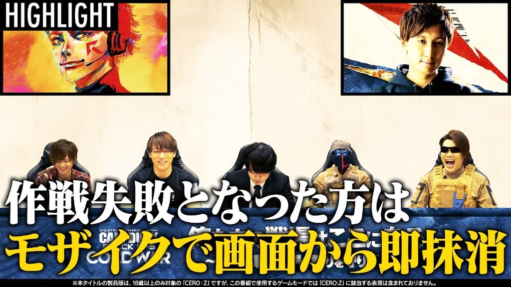 そんな彼らがk4senさんのMCのもと、秘密作戦<ブラックオプス>と称するさまざまな制約条件を課された「縛りプレイ」で、『コール オブ デューティ ブラックオプス コールドウォー』のオープンベータに挑戦。もし失敗すれば、屈辱的な罰ゲームが待ち受けます。