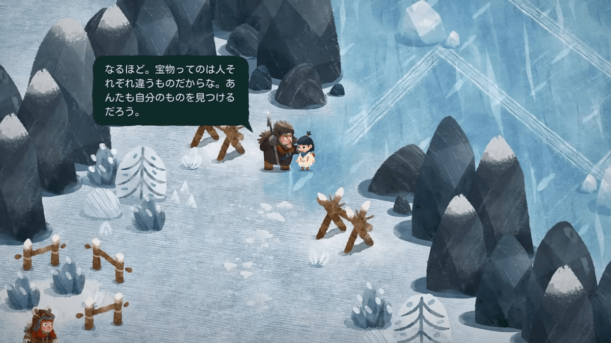 こうした住民たちがくれるヒントは、全体的にややぼんやりした印象もあるが、理不尽さを感じることはない。むしろ、話を聞いてから地図の欠片を配置して実際にマップを歩き、周りにあるものを見回したときに「あ、そういうことか!」と思えるような“ひらめく楽しさ”を感じさせてくれるものばかりだ。会話に使われている言葉も平易なので、小さな子どもと一緒に「どうすればいいんだろうね?」と相談しながら遊んでみるのも楽しそうだ。