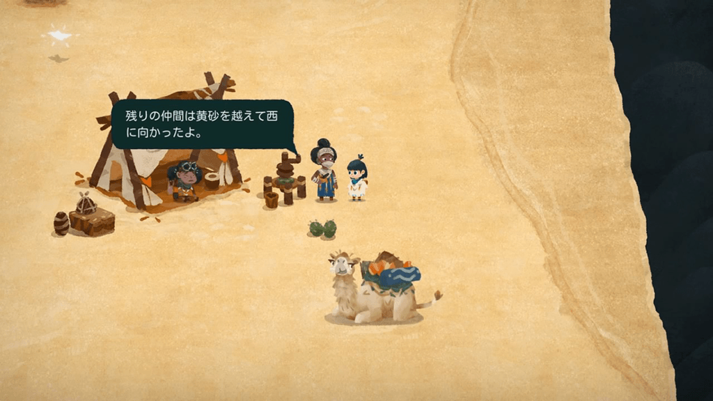 カートの旅を導いてくれるのは、各地に住んでいる住民たちだ。各地方でのどかに暮らす彼らは、カートにさまざまな情報をくれたり、頼みごとをしてきたりするが、それが新たな地図の欠片を手に入れ、先に進むためのヒントになっている。