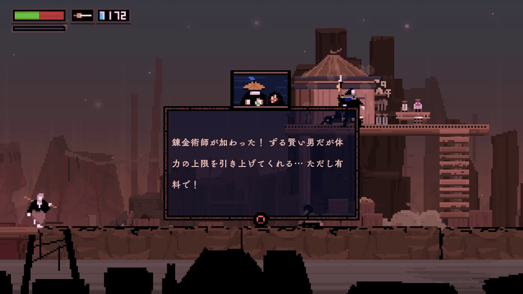 最後に注目しておきたいのが、本作の大きな魅力となっている2Dピクセルアートで描かれる独自の世界観だ。一見するとザラッとした荒い印象のドット絵グラフィックだが、ファラデーのアクションだけでなく、登場する人々の動作やステージ内で揺れる雑草などの動きまで、細部までこだわった繊細なピクセルアニメーションで表現され、まったく違和感がない。