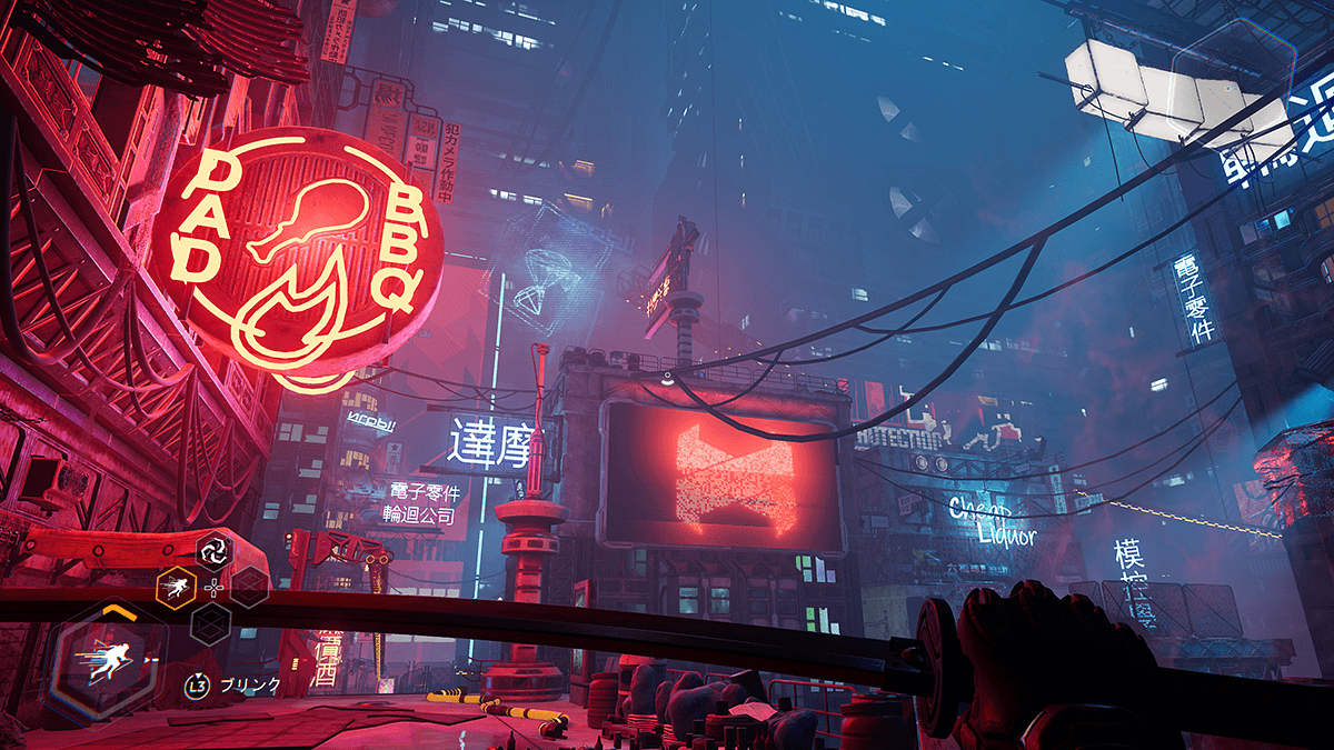 『GHOSTRUNNER(ゴーストランナー)』は、高層ビルが林立する要塞都市を忍者のように駆け抜ける一人称視点のサイバー・パンク・パルクール・アクション。音声は英語やイタリア語といった外国語だが、字幕は日本語にも対応している。