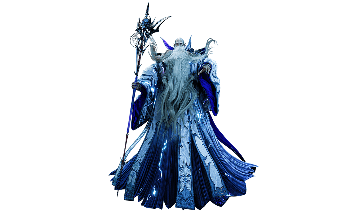 雷属性の召喚獣。伝説の老帝。罪人を雷によって裁き、人々に正義を説いたと言われている。杖によって雷を自在に操り、轟く雷鳴とともに敵を葬り去る。