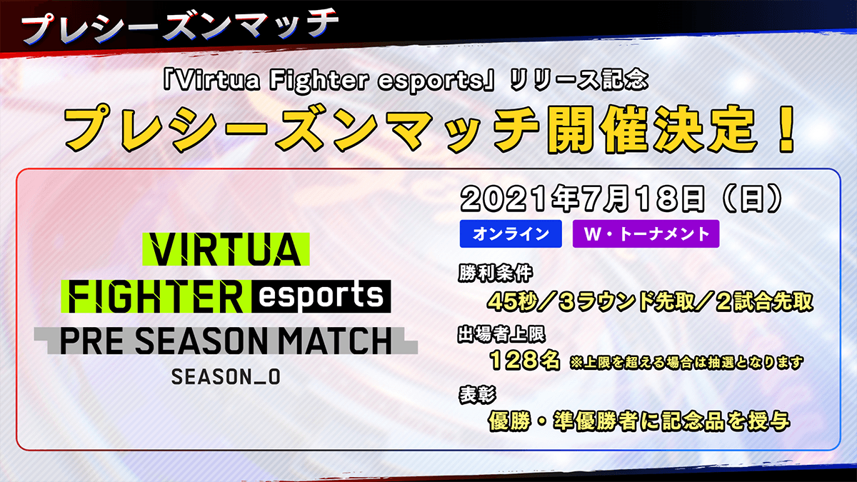 プレ大会「VIRTUA FIGHTER esports PRE SEASON MATCH」が7月18日(日)開催! エントリー受付中!!