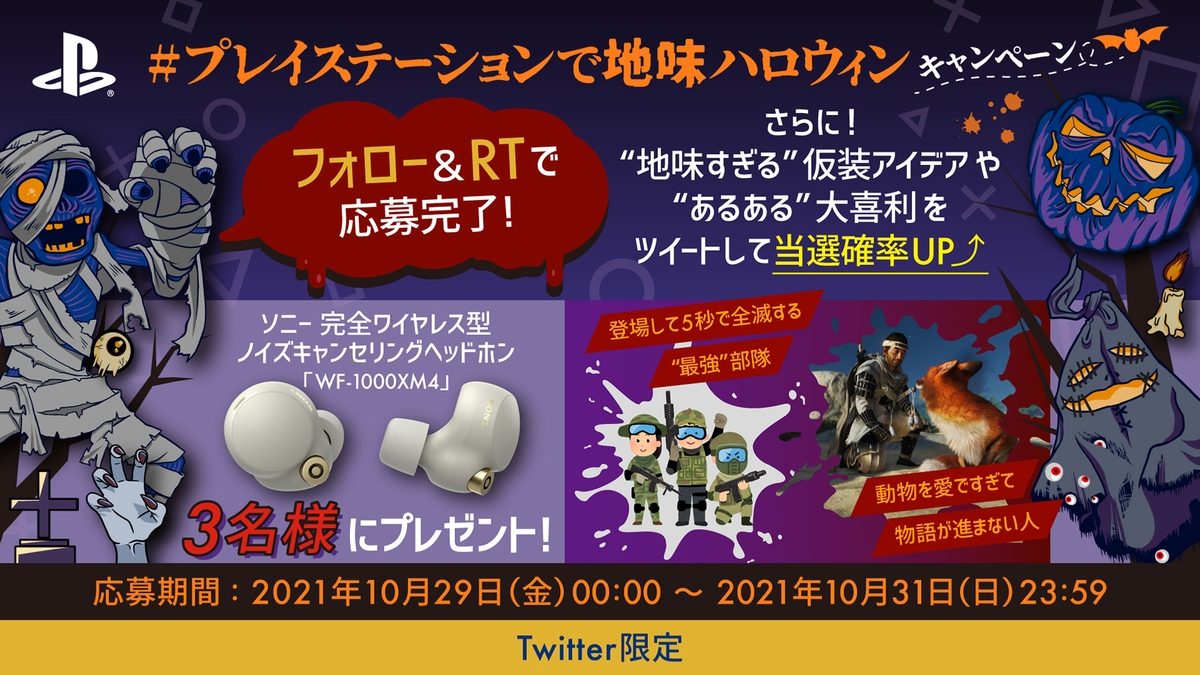 ソニー・インタラクティブエンタテインメント(SIE)は、いつもプレイステーション®を応援してくださる皆様へ感謝の気持ちを込めて、プレイステーション公式Twitterにて、豪華プレゼントが当たる「#プレイステーションで地味ハロウィン キャンペーン」を本日10月29日(金)より開催します。