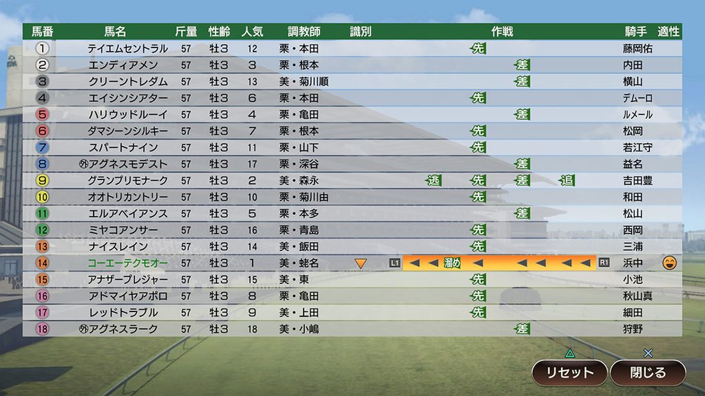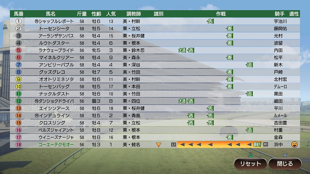 レースでの新作戦として、「溜め逃げ」「イン狙い」「まくり」「最後方強襲」の4つが新たに追加される。「溜め逃げ」は逃げ、「イン狙い」は先行、「まくり」は差し、そして「最後方強襲」は追込と、騎手が得意としている能力によって選択可能。さらに、「イン狙い」は内寄りの1~3枠、「まくり」は外寄りの6~8枠に入った馬のみが選べる。