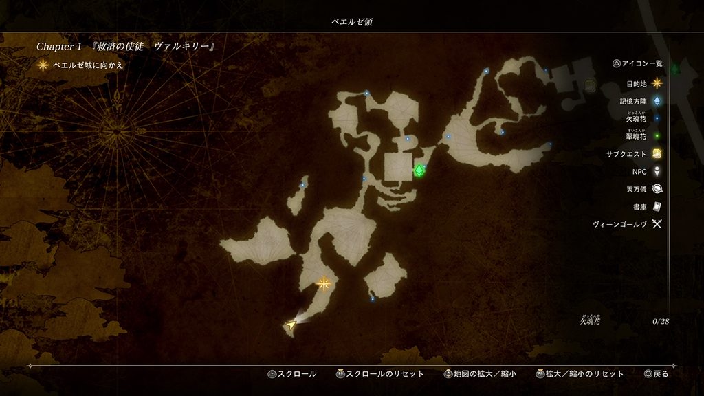 また、タッチパッドで開くマップ画面には、目標地点のほかにも、セーブポイント、サブクエスト発生地点、かつて生きていた人々の思念が宿る欠魂花(けっこんか)の場所なども表示。サブクエストや欠魂花はやり込み要素にもなっており、マップには表示されないが貴重なアイテムを入手できる宝箱も点在しているため、一直線にボスへ向かうよりも隅々まで探索したほうがいいだろう。