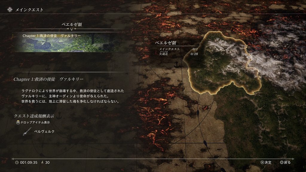 本作のゲーム進行はステージクリア型で構成される。主神オーディンがいる神界ヴァルハラを拠点とし、メインクエストのチャプターを選択して地上界のステージに移動。ステージマップを探索し、最奥にいるボスを倒して神界に帰還するという流れが基本だ。