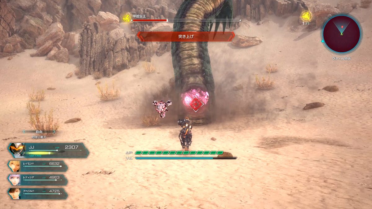 ボスモンスターによっては、弱点部位が存在する場合がある。弱点部位を攻撃すると大ダメージを与えられるが、一見するとわかりにくい場所にあることも多い。そんなときは、エレナのVAアタックが有効。敵の特徴を分析できるエレナの能力で弱点部位をしっかりと認識し、効果的に戦おう。