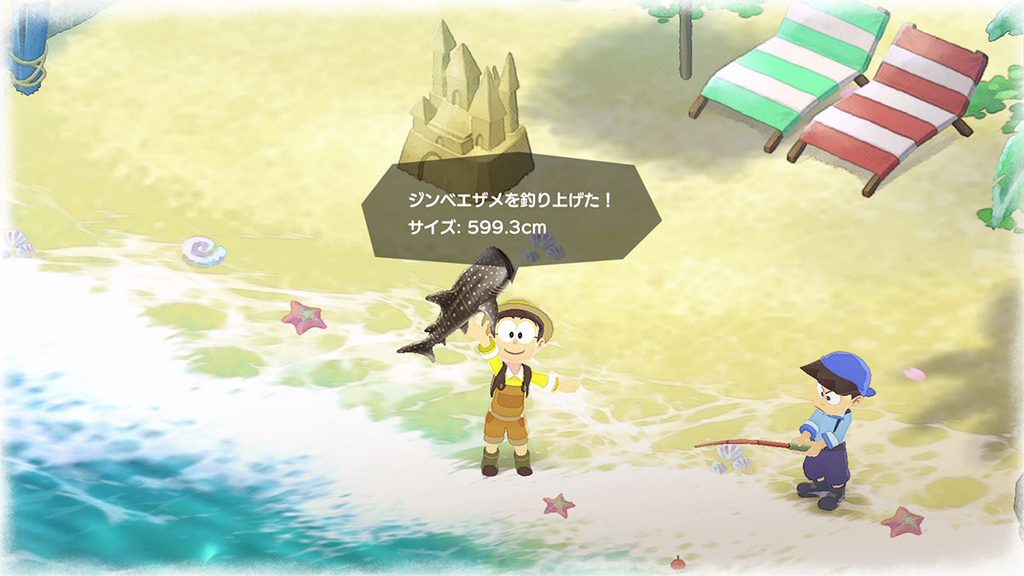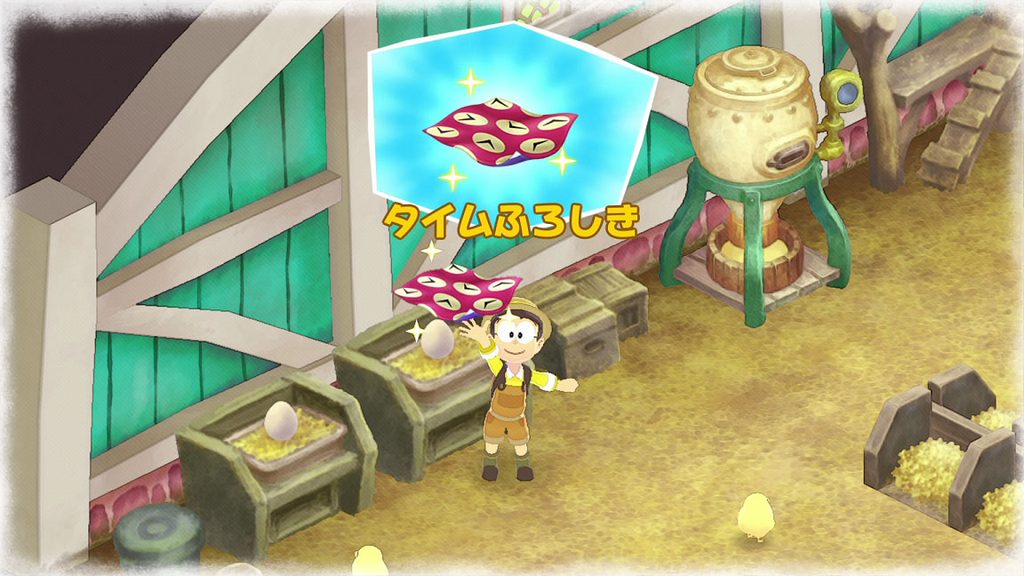 さらに、本作では「タケコプター」と「雲かためガス」で雲の上に牧場を作ったり、「テキオー灯」で海の中へ行って真珠を養殖したりと、夢あふれる生活が広がっていく。