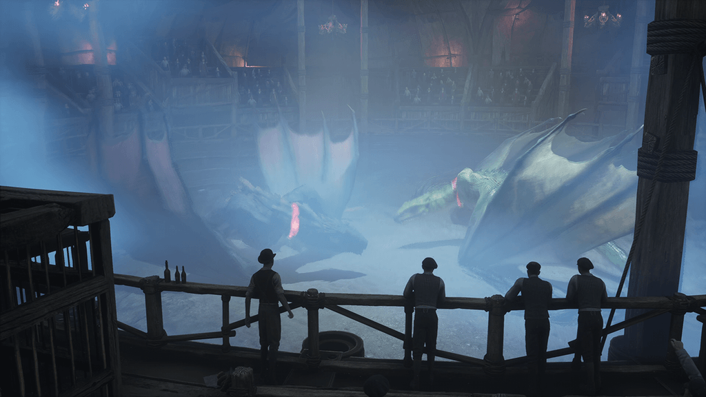 見張りを突破して目的地のテントに忍び込むと、そこは捕らえたドラゴンを戦わせて客に見せる闘技場になっていた。しかも、運営している密猟者は、小鬼(ゴブリン)と協力関係にあるようだ。