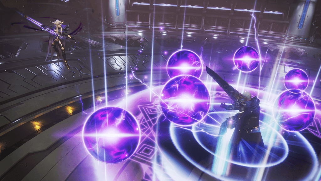 プレイヤーの足元に魔法陣が発生し、浮かび上がる複数の魔法の球が爆発します。