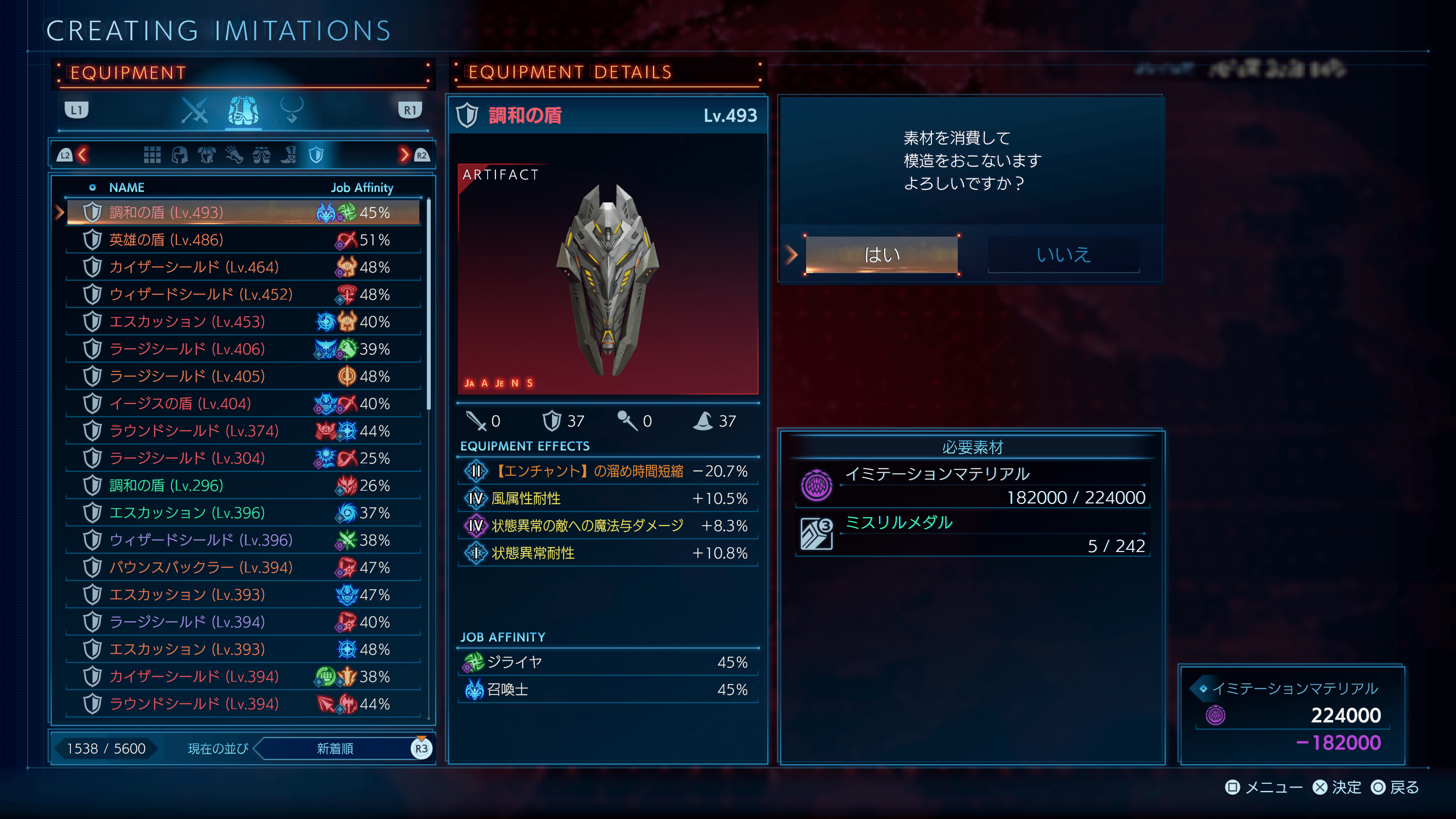 鍛冶の新たな機能です。一説にはルフェインの技術と言われています。イミテーションマテリアルと鍛冶素材を用いて装備品を複製することができるようになり、カオス効果などを複製することができます。