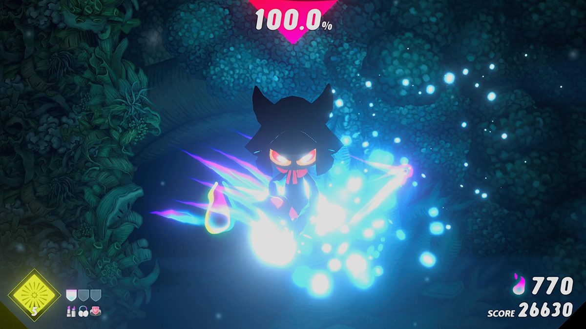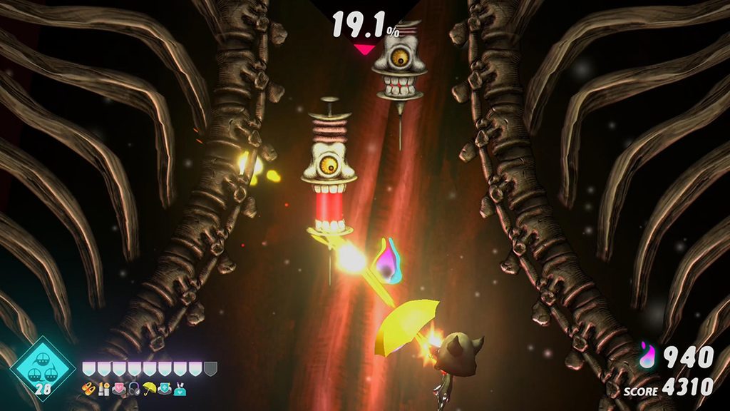 逆にステージの最後まで辿り着いてもゲージが100%未満ではクリアとはならず、ステージの最初へとループ。引き続き敵を倒して、ソウルを集めることになる。ループするたびに敵の攻撃は激しくなっていくものの、それまでに獲得したゲージは引き継げるうえに、出現するソウルの量が増えるので、そのステージの最後まで辿り着ける腕前を身に付ければクリアは難しくない印象だ。