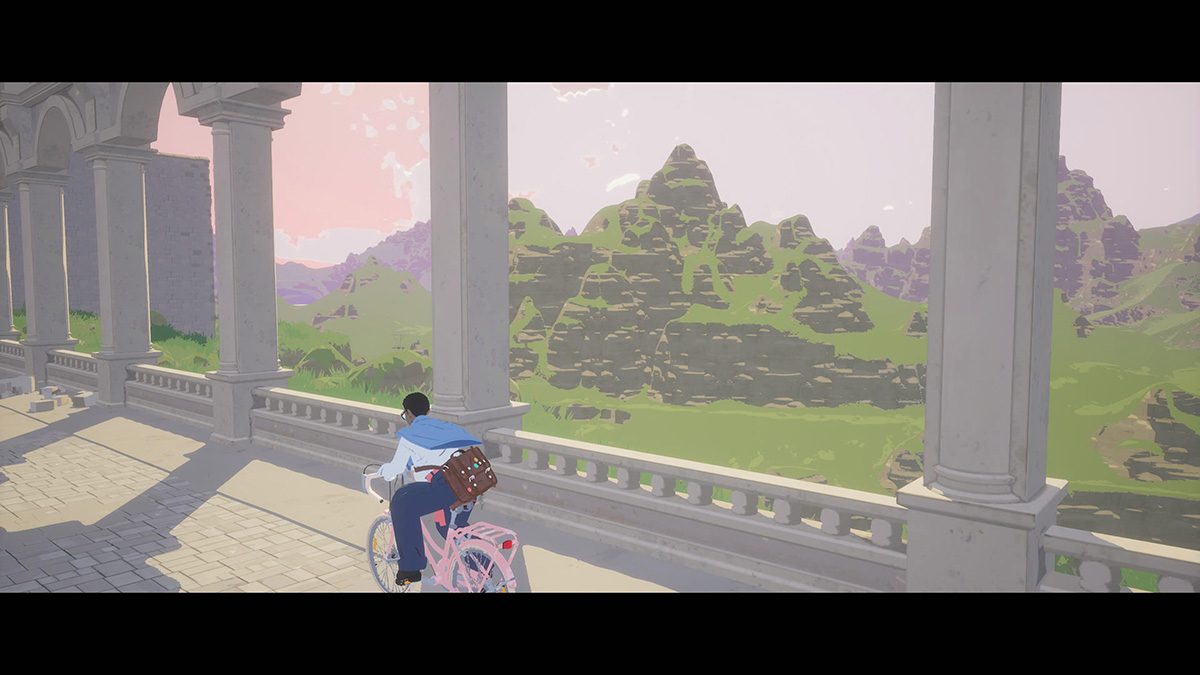 目の前に広がるのは、豊かな自然にあふれた牧歌的な風景。連なる山々や生い茂る木々などの絶景が、プレイヤーの目と心を引きつける。この雄大かつ色鮮やかな世界を自転車で駆け抜けるというシチュエーションに心躍る人もいるはずだ。