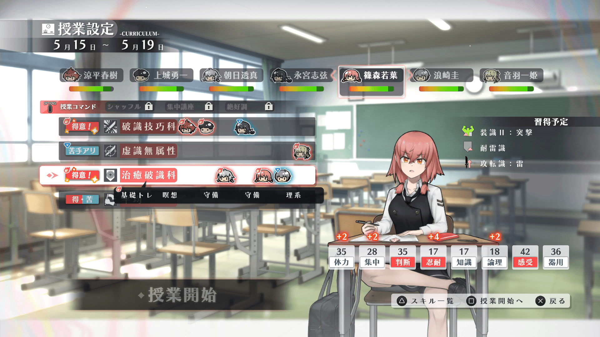 生徒たちは、成長に応じて戦闘で使うスキルを習得します。また、ステータスの成長はスキル習得だけでなく、定期試験といった学校生活でのイベントにも影響することがあります。
