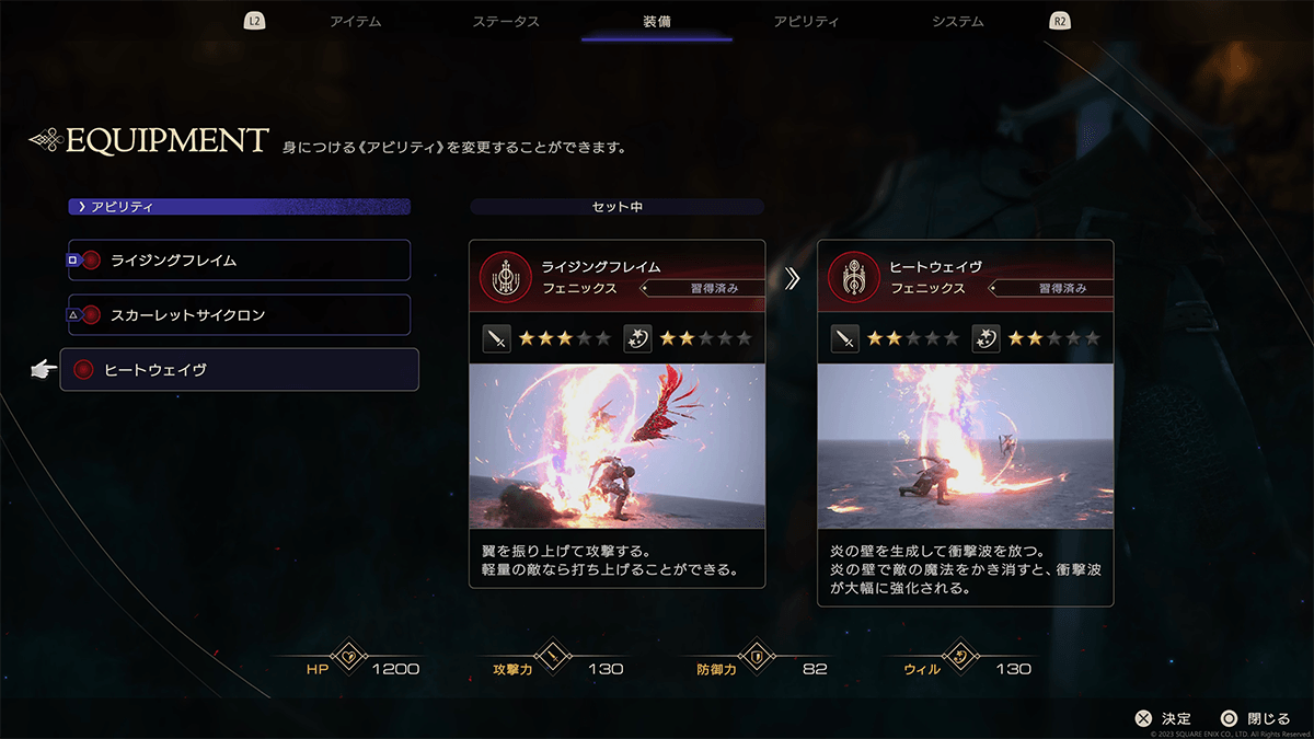 高井:基本的には3つの召喚獣(フィート)にアビリティが各2種類ずつ、計6種類という認識が正しいです。覚えた召喚獣のアビリティやフィートのすべてをバトル中に使いこなす、といった形は最初から念頭にありませんでした。アクション部分を作りこむと決めた時点から、メニューを開いて切り替えるというような操作は画面が止まってしまうので考えませんでしたし、バトルことに装備アビリティを再セットして挑むことはしないで済むようにしています(できなくはないですけれど)。プレイヤーの皆さんが気に入ったアクションの組み合わせで戦っていただきたいという思いが強かったので、今回のような形を目指していました。