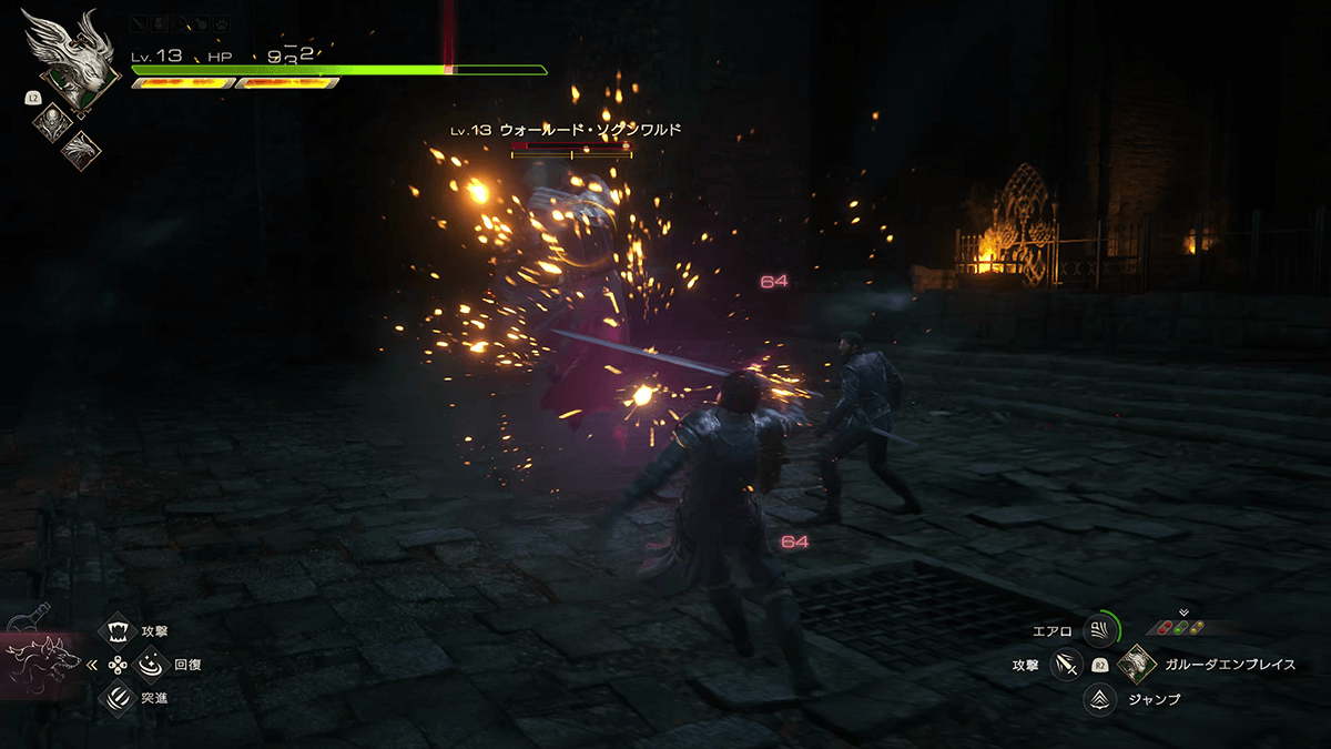 攻撃アクションの楽しさにのめり込んでいく一方で、敵の攻撃を回避することに慣れるのは時間がかかった。集団戦で死角から飛んでくる攻撃や、隊長クラスの特殊攻撃を回避するのは、バトルテンポの早さもあってなかなかに難しく、回避の意識はつねに持っておく必要がある。そんな本格的なバトルアクションだからこそ、攻撃で気持ちよくなるのはもちろん、的確な回避を交えた立ち回りができるともっと気持ちよくなれるのだ。