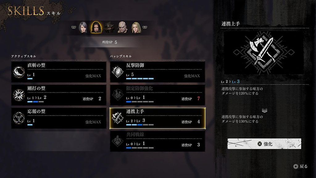 スキルは、レベルアップ時に習得でき戦闘の際にAPを消費して使用する「アクティブスキル」と、レベルアップ時に獲得できる「SP」を使って習得すれば常に発動する「パッシブスキル」の2種類。多くのスキルはSPを用いて強化することもできる。どのスキルを習得&強化するかはプレイヤーの戦略次第。SPや自分のスタイル、ユニットの特徴を考慮しながらの選択に頭を悩ませることになるのだが、それもまた楽しくてつい熱中してしまう。