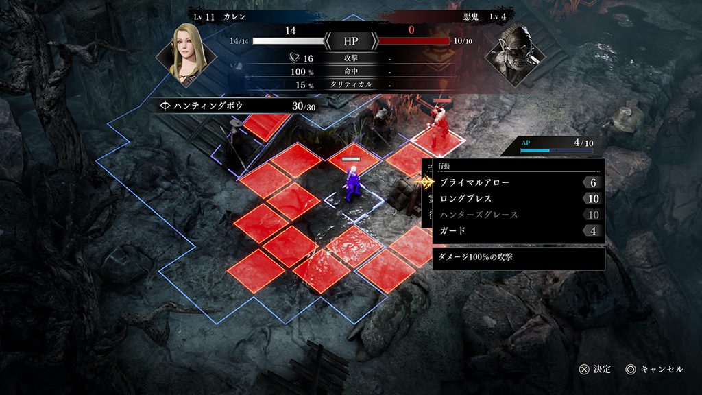 メインとなるバトルパートは、灰鷹旅団たち味方ユニットを操作するプレイヤーのターンと、CPUが操作するモースたちのターンが交互に行なわれる形で進行。操作するユニットの順番は「敏捷」などのステータスに関係なくプレイヤーが任意に決めることができ、すべてのユニットの操作を終えるか「ターン終了」を選ぶことで、敵のターンに切り替わる。