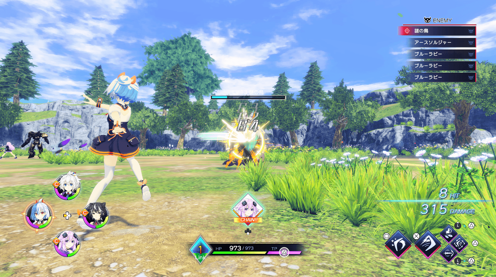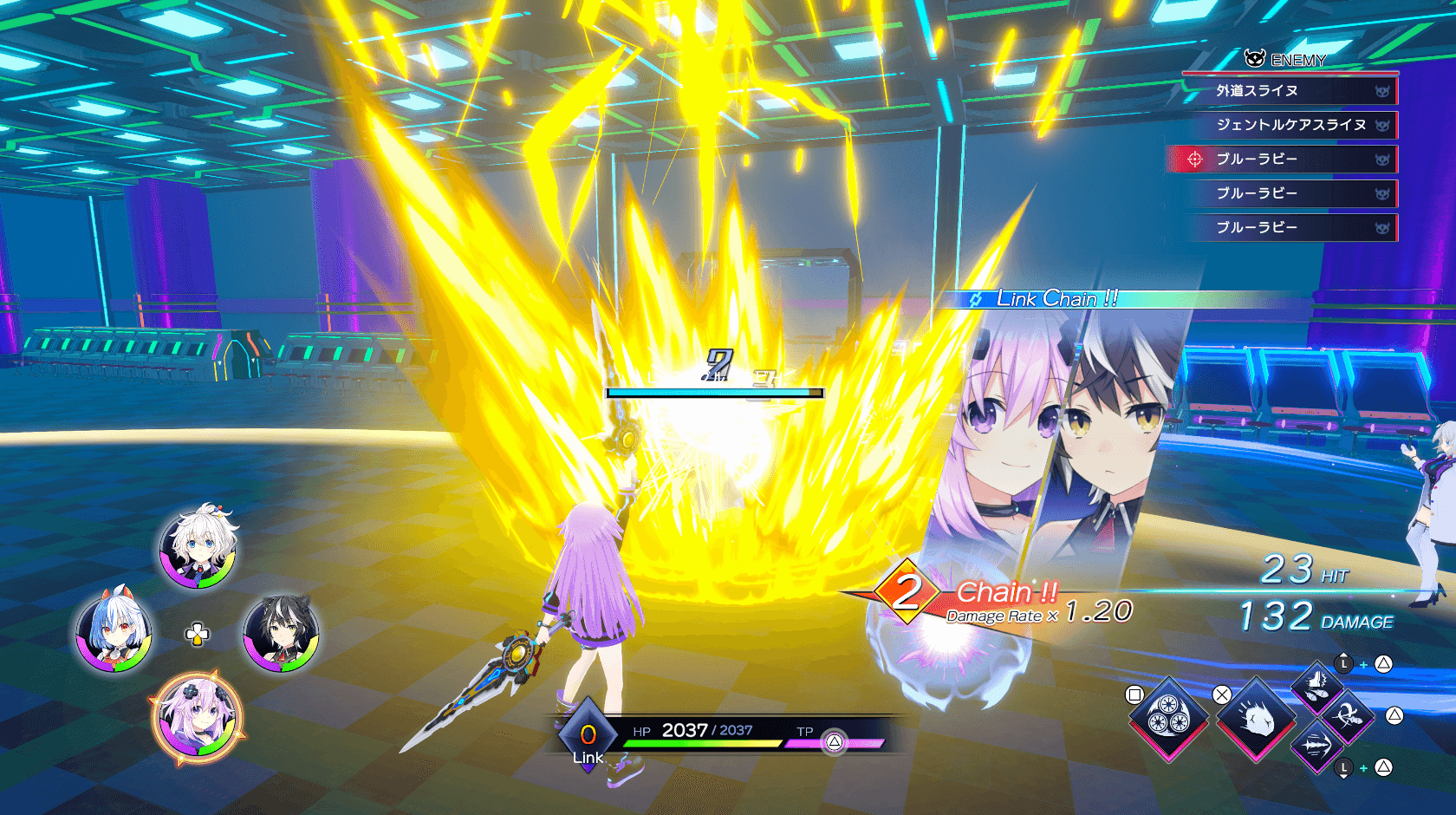 パワーアップ要素である“女神化”や、敵を一掃するド派手な一撃“エグゼドライヴ”など、「ネプテューヌ」シリーズおなじみの要素も搭載! 連携のなかで織り交ぜていくことで、ダイナミックなバトルを繰り広げることができます。
