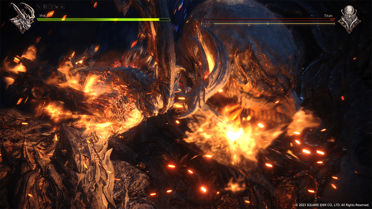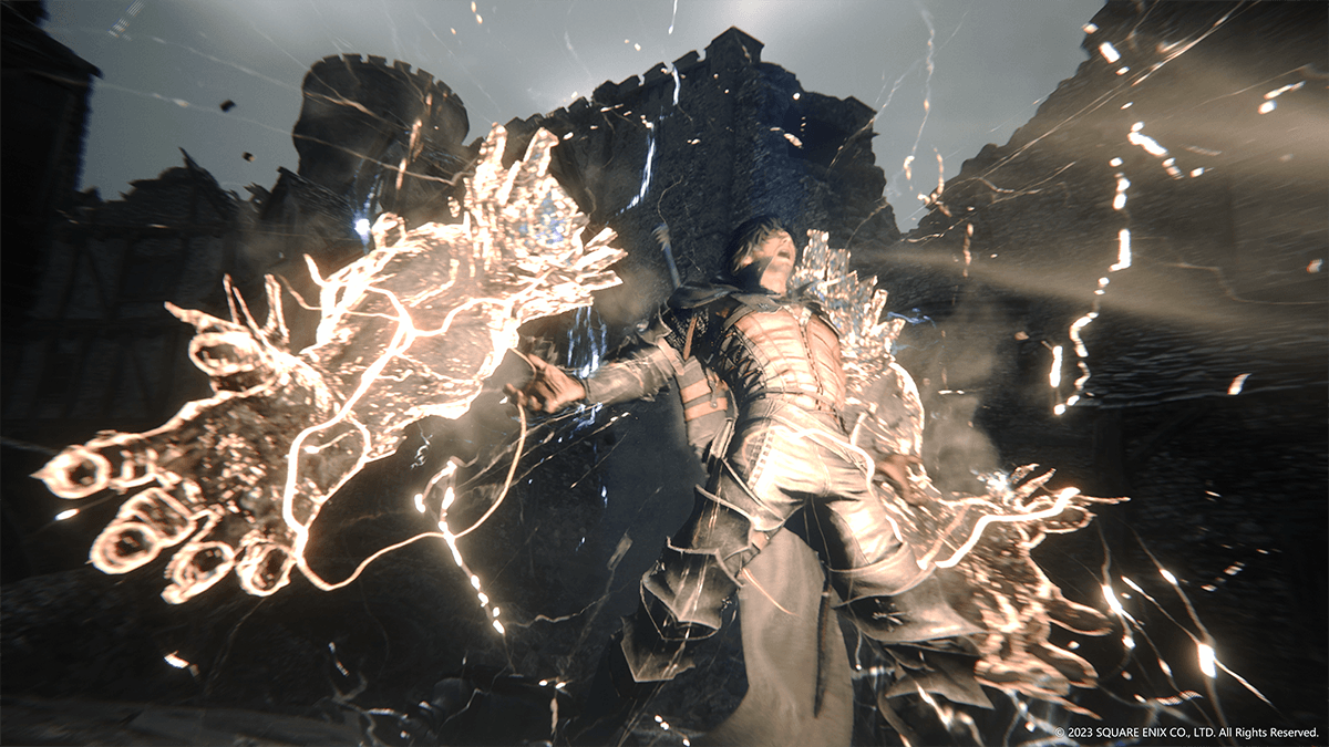 『FINAL FANTASY XVI』はシリーズ初の試みとして、フルアクションRPGとして制作しています。DualSense™ ワイヤレスコントローラーを操作した際に、リアクションがダイレクトに感じられるよう手触りを重視して調整してきました。召喚獣にフィーチャーしたバトルになっていて、多彩な召喚獣アクションを駆使しての自由度の高い戦いを行なうことができます。またプレイヤーが召喚獣そのものを操作する“召喚獣vs召喚獣”といったシチュエーションを多数体験していただけます。ノンストップの怒濤のアクションを楽しんでいただけると思います。