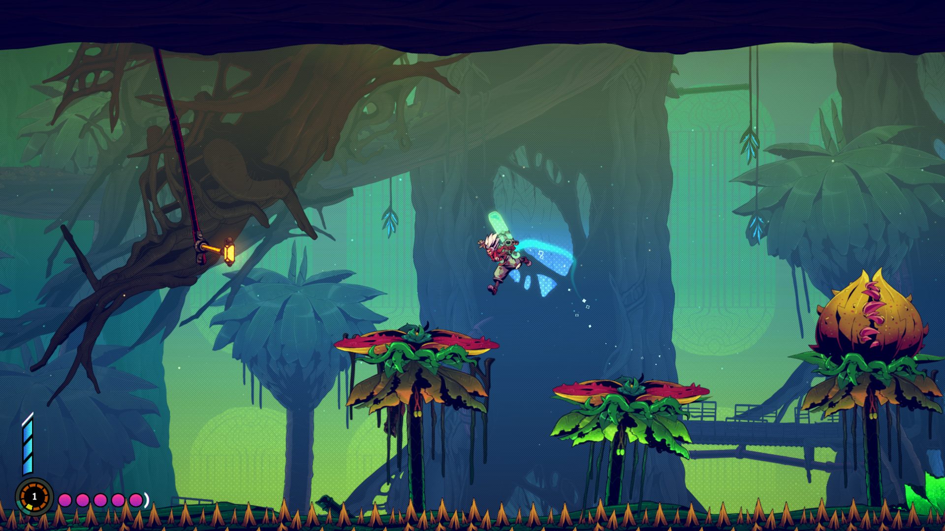 強敵を倒すと、新たなスキルを習得できる。例えば、「バットスピン」を身につけると、バットを投げて敵を攻撃できるようになる。さらに、投げたバットを使って仕掛けを作動したり、高い場所に移動する足場にしたりと、ステージの探索にも役立つ。ステージをくまなく探索し、隠された秘密、収集アイテム、アンロック可能な音楽などを探すのも楽しい。Evader Musicによるエネルギッシュなチップチューンも、冒険を盛り上げてくれる。