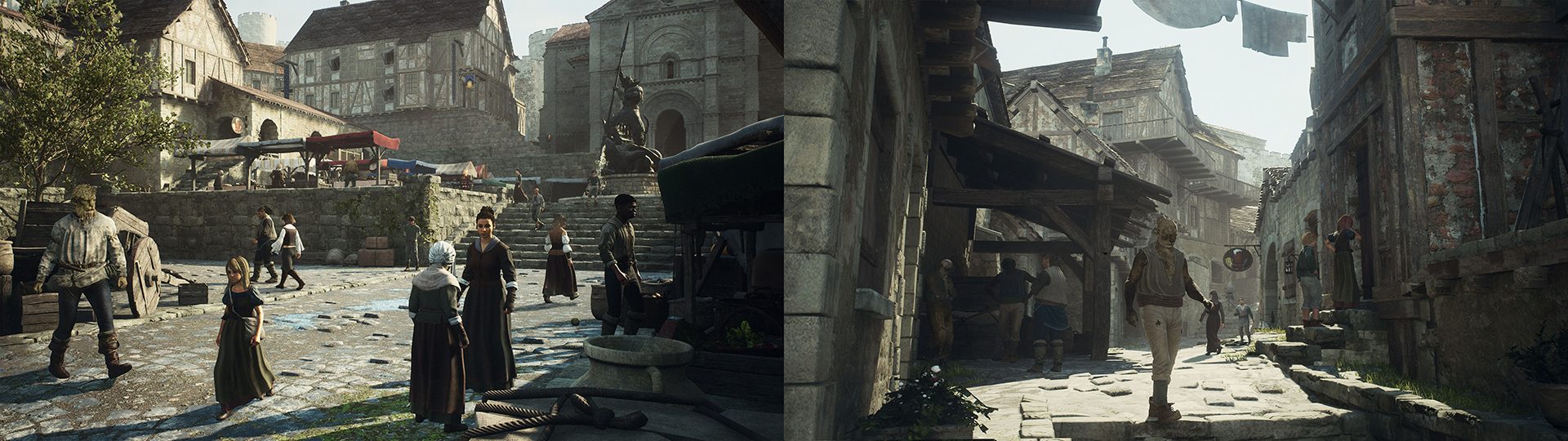 数々の作品を生みだしてきたゲームエンジン“RE ENGINE”と、最新ハードが描き出す『ドラゴンズドグマ 2』の世界。そこで暮らす人々や魔物には、AIによって生活の息吹が与えられ、写実的なグラフィックは物理演算で制御されたオブジェクトで彩られている。実在感に満ちた王道ファンタジーの世界。それが本作の舞台だ。