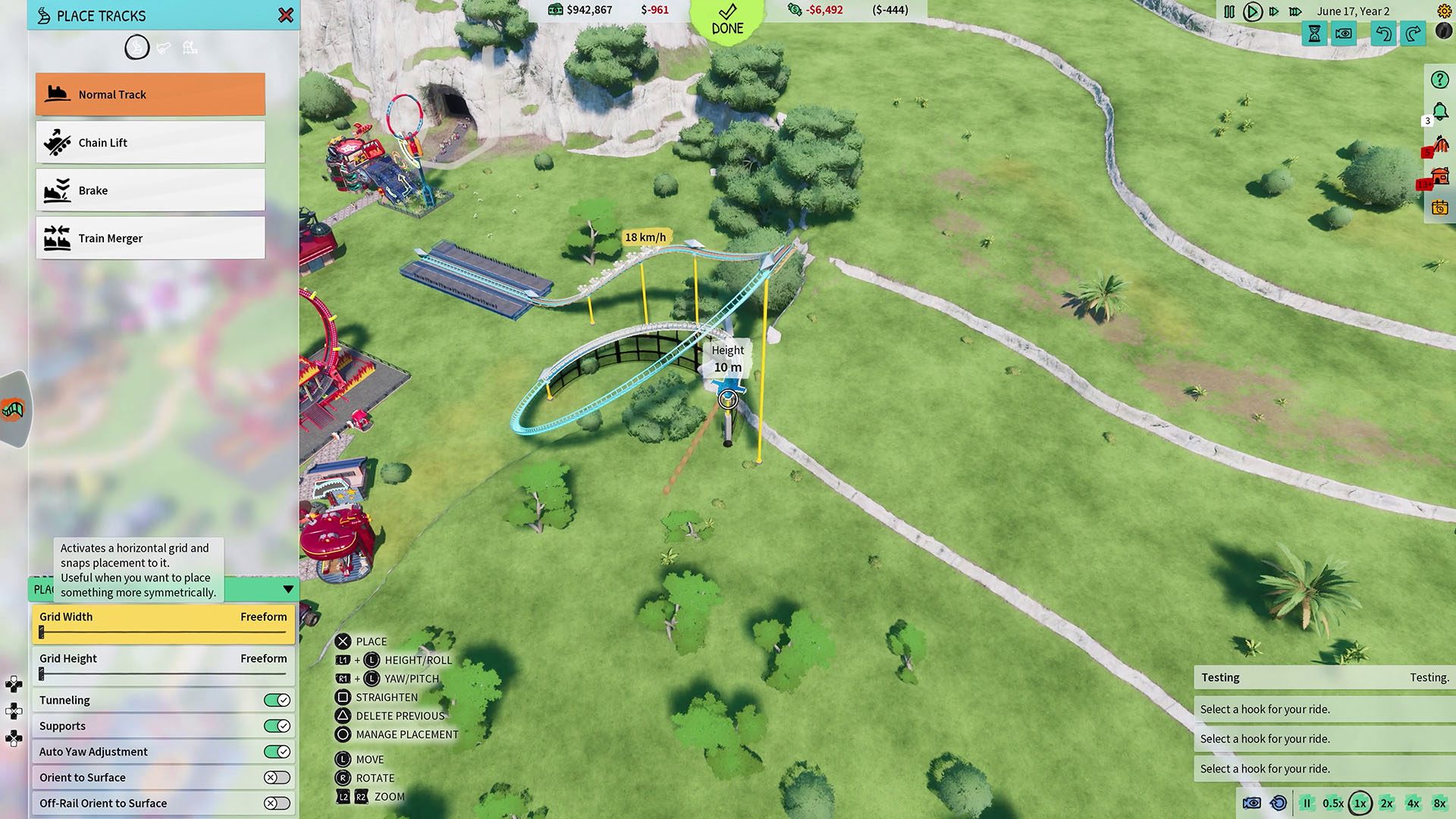 進化したジェットコースター作成ツールを使ってさまざまなモジュールを組み合わせれば、ユニークなジェットコースターを簡単に作成できる。来場者を楽しませ、満足度によってアトラクションや施設がレベルアップする「ドリームチェンジ」を目指せ!