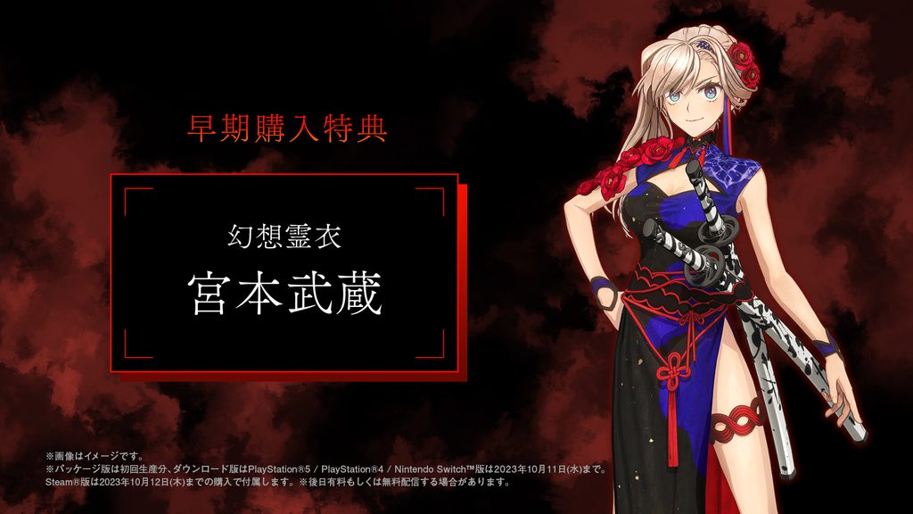 また、パッケージ版の予約受付を順次開始しています。早期購入特典はゲーム内アイテム“幻想霊衣 宮本武蔵”ですので、お見逃しなく!