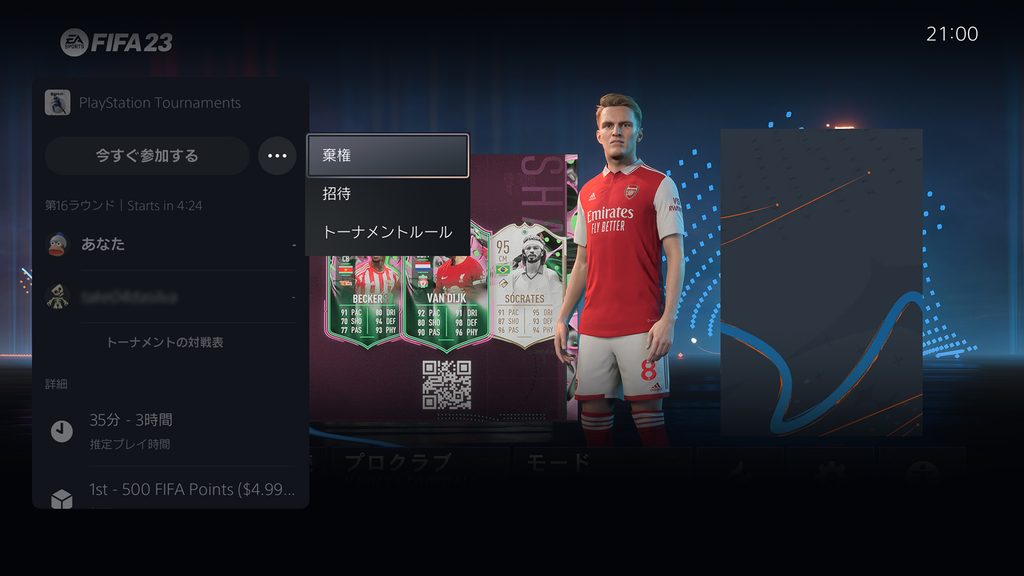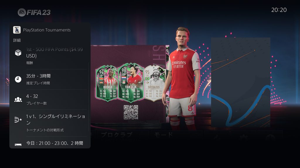 トーナメントに優勝すると、対象タイトルのゲーム内通貨をはじめとした賞品を獲得できます。また、大規模なeスポーツ大会の出場権を得られることもあります。例えば対象タイトルのひとつ『FIFA 23』では、eスポーツ大会「FIFA 23 スプリングオープン」の予選がPS5トーナメント機能を使って行なわれ、成績上位者がプレイオフに出場しました。