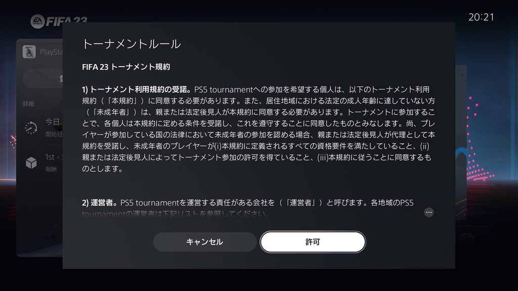 2023年6月29日(木)現在、日本国内におけるPS5トーナメントは『FIFA 23』『Guilty Gear -Strive-』の2タイトルが対象となっており、これらのPS5版を利用できることが必要です。