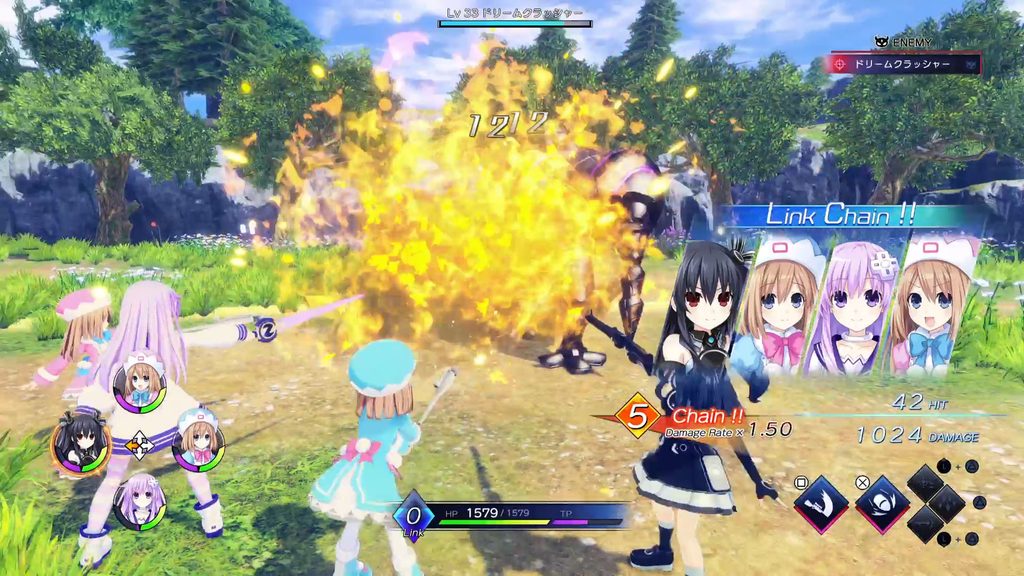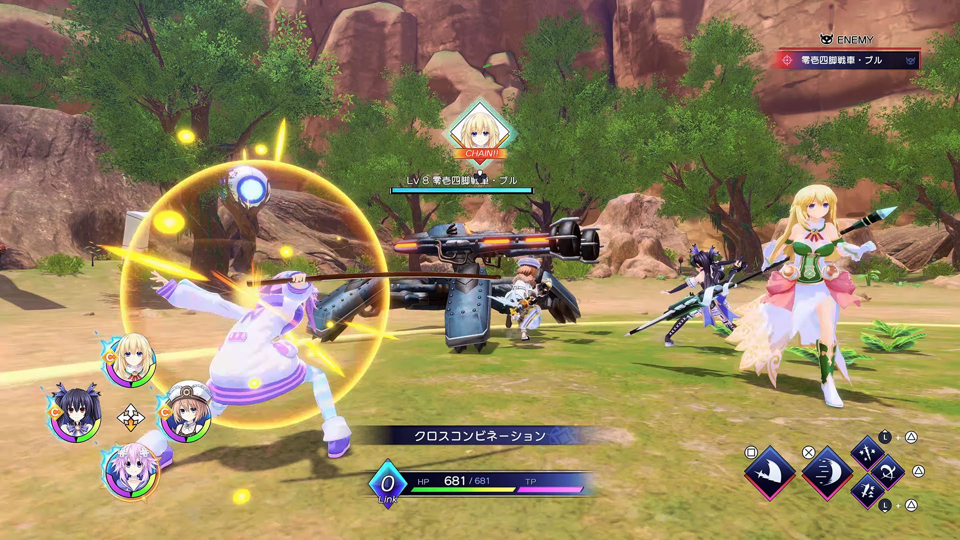 従来の3人パーティから4人パーティへ拡張されたことも、本作のポイント。メインキャラである「大人ネプ+3人の失敗女神」はもちろん、おなじみの「四女神」や「四姉妹」といった組み合わせで、ダンジョン探索やバトルに挑むことができる。