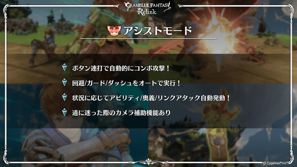 原作のストーリーやキャラクターが好きで『リリンク』もプレイしたいが、アクションゲームの複雑な操作が苦手という人でも楽しめるシステムも用意されている。「アシストモード」は、攻撃ボタンを連打するだけで適切なコンボを繰り出せたり、連携攻撃を発動したりと、アクション入力を自動でサポートしてくれる。さらに、コントローラーでのプレイにも慣れていないという人に向けては、移動するだけで攻撃や回避をすべてしてくれる「フルアシストモード」も搭載する。高難度のエンドコンテンツのような一部のクエストでは、これらのサポート機能は利用できないが、マルチプレイでも使うことはでき、アシストモードだからといってクリア報酬が下がるようなデメリットはない。