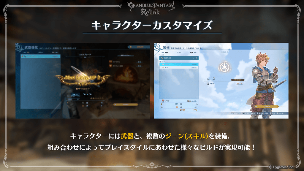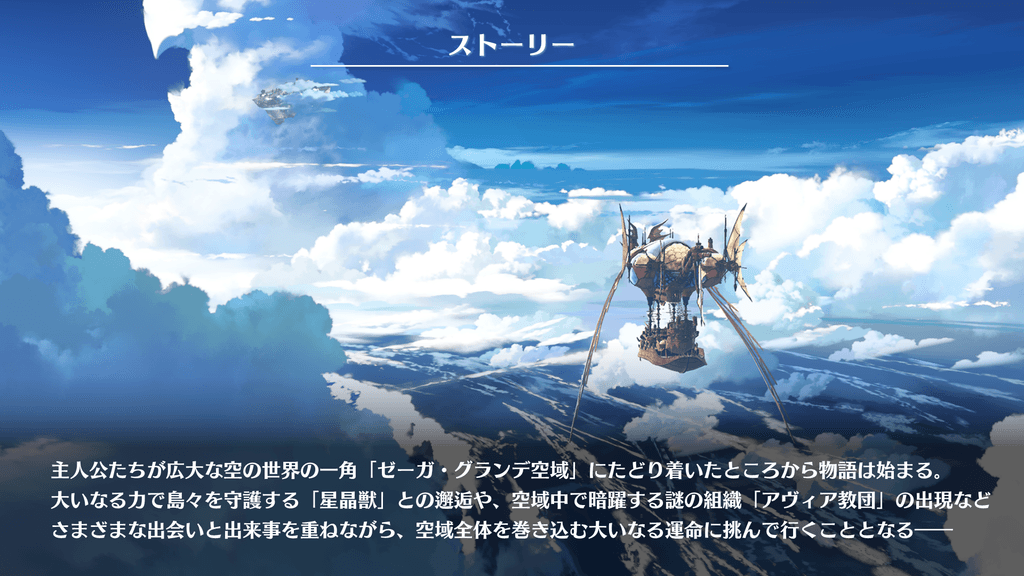 原作『グランブルーファンタジー』は、島々が浮かぶ空の世界が舞台。その広大な空の世界の一角「ゼーガ・グランデ空域」にたどり着くところから『リリンク』の物語が始まる。原作未プレイヤー向けに、この世界がどんなところなのかは、序盤からていねいに描かれるという。主人公キャラクターは男女が選択でき、名前と見た目はいつでも切り替えられる。これは原作と同じ仕組みであり、「主人公=プレイヤー」という考え方を踏襲したものだ。