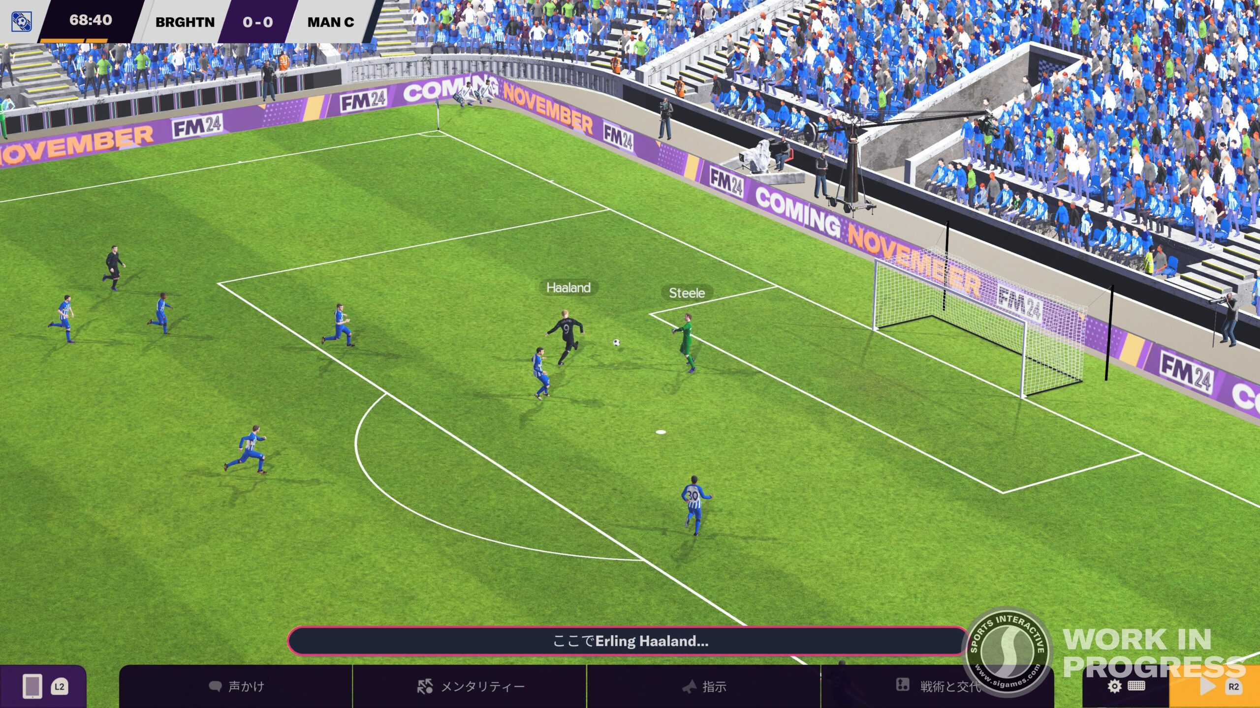 『Football Manager 2024 Console』では試合のエンジンが進化しています。ボールや選手の動きが改良されたことで没入感が高まり、これまででもっともリアルな試合体験をできるようになりました。