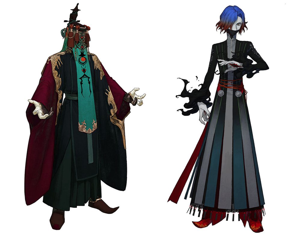 (右)「魔術師」のクラスを持つサーヴァント。盈月の儀の裏側で何やら暗躍しているようだが、その目的も正体も一切の情報はない。