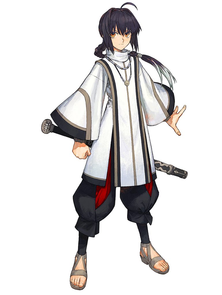 「剣士」のクラスを持つサーヴァント。古風な装いをまとい、波打つ剣を振るう。突如として伊織の前に現れ、その危機を救ったが、伊織を弱いと断じ、盈月の儀をひとりで戦うと言ってはばからない。平穏な江戸の町並みに興味津々な様子。