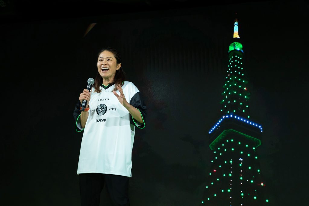 キックオフセレモニーに澤穂希さんが登場、東京タワーが「Pitch Green」に染まる!