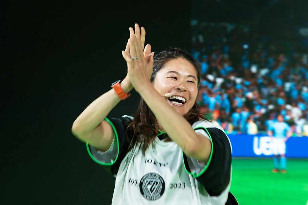 逆転勝ちの要因を「本番のPKみたいに心臓バクバクでしたが、それを見せないようにしました」とコメントし、まさにレジェンドという強メンタルを見せた澤さん。最後に「久しぶりにドキドキしてサッカーをやっている感じでした。ファンの声援もあってすごく楽しかったので、これを機に私もゲームをやろうかな」と笑顔で語り、会場を大いに盛り上げた。