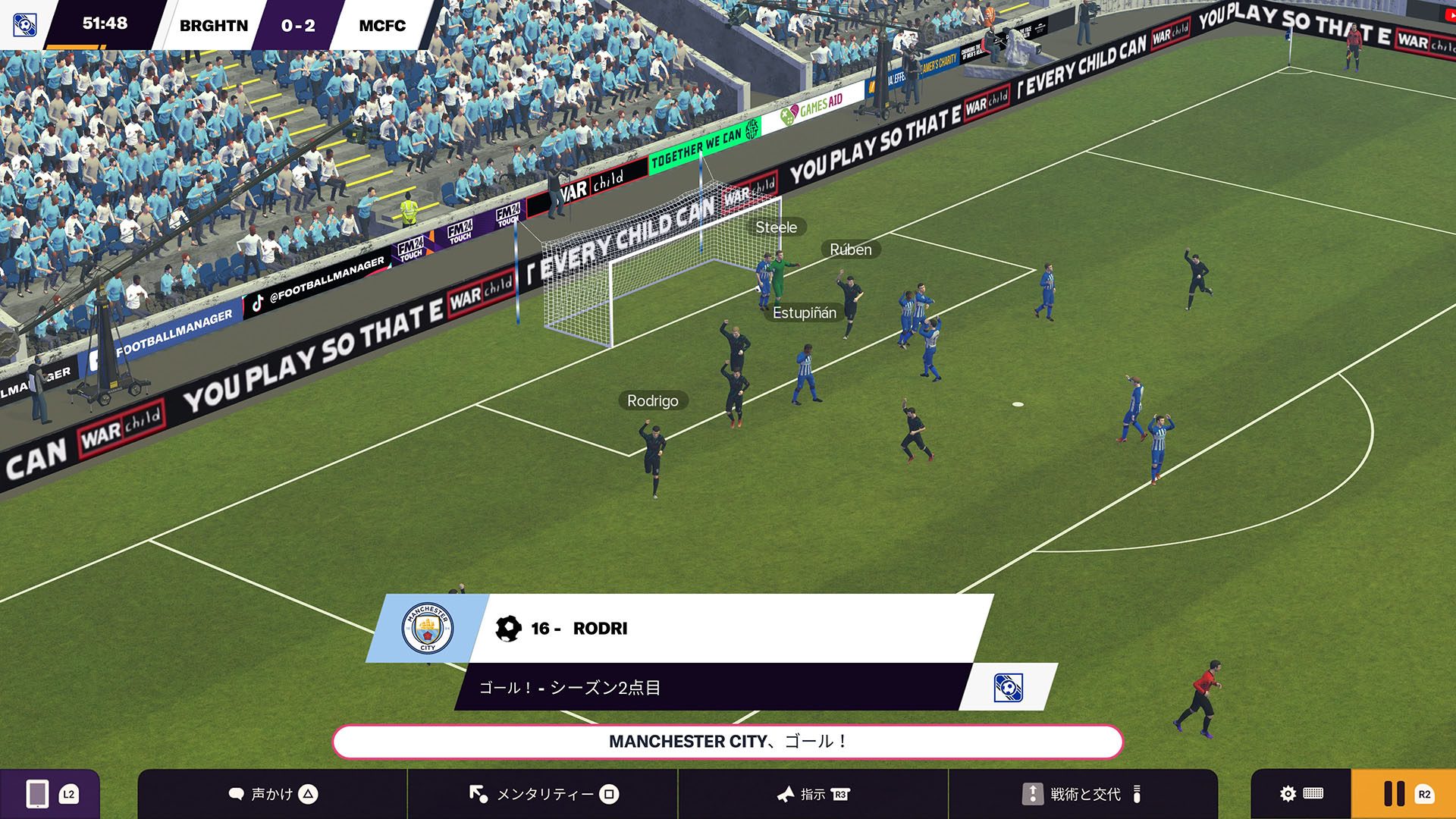 試合ではさまざまなオプションを使って、どの程度アクションを見るか設定し、タッチラインからすべての重要な戦術的判断を下すことができる。ロッカールームトークやピッチサイドでの声かけで選手とコミュニケーションを取り、戦況を変えることも可能だ。スピーディーにトップへ上り詰めたいのなら、「インスタントリザルト」オプションを使い、試合終了のホイッスルが鳴るまでスキップしてシーズンを駆け抜けることもできる。