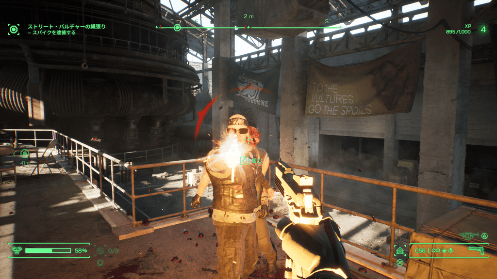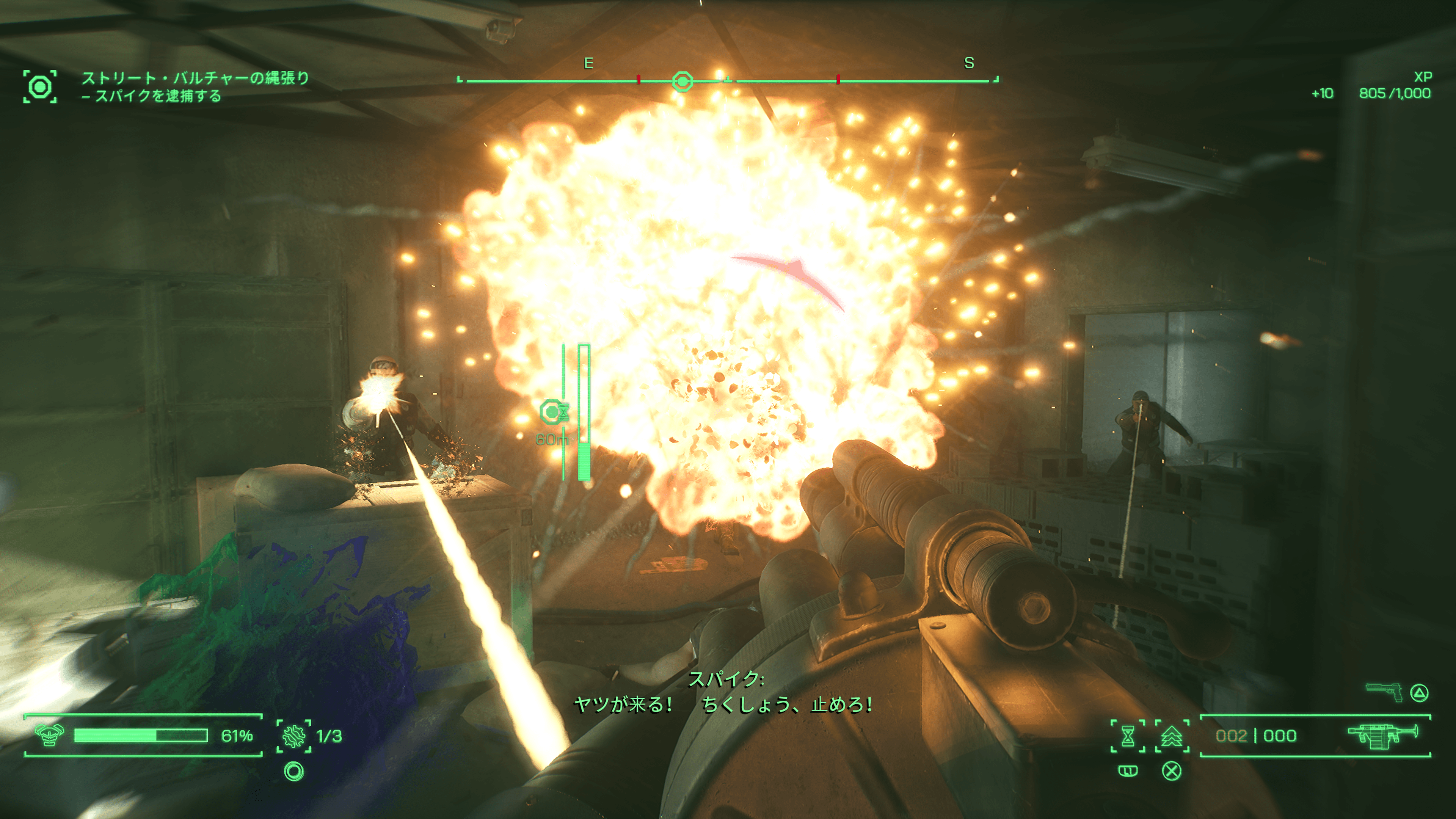 また、敵が使っていた銃は拾って使うことも可能です。拳銃やショットガン、ロケットランチャーまでさまざまな武器種を使用できます。オート9は万能ですが、ときには別の武器が役立つこともあるので、適切な武器を場面によって使い分けましょう。