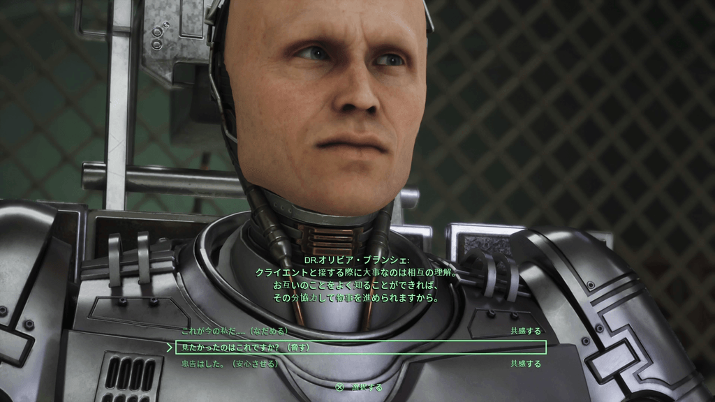 相手のことを想い人間的な行動をするのか、あくまでロボットとして職務を優先するのか。その選択はロボコップとなるプレイヤーにつねにゆだねられます。その後のストーリーに大きく影響することもあるので、言葉は慎重に選んでください。