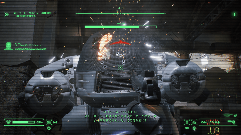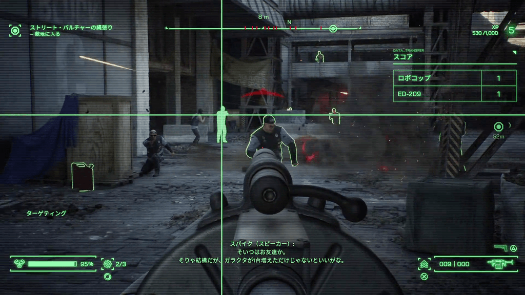 好戦的な犯罪者やギャングたちと対峙した場合、治安維持のため銃撃戦になる場合もあります。愛銃・オート9やオムニ社の最新鋭テクノロジーを使って敵を制圧しましょう。
