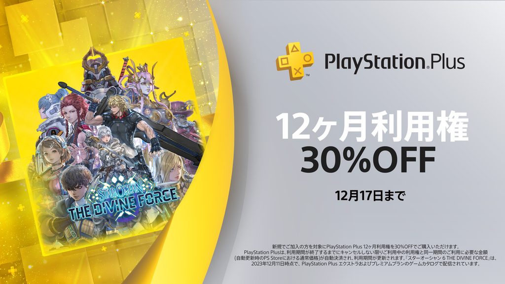 PlayStation Plus ウインターセールは12月17日(日)まで! 新規加入者を対象に全プランの12ヶ月利用権が30%OFFに!