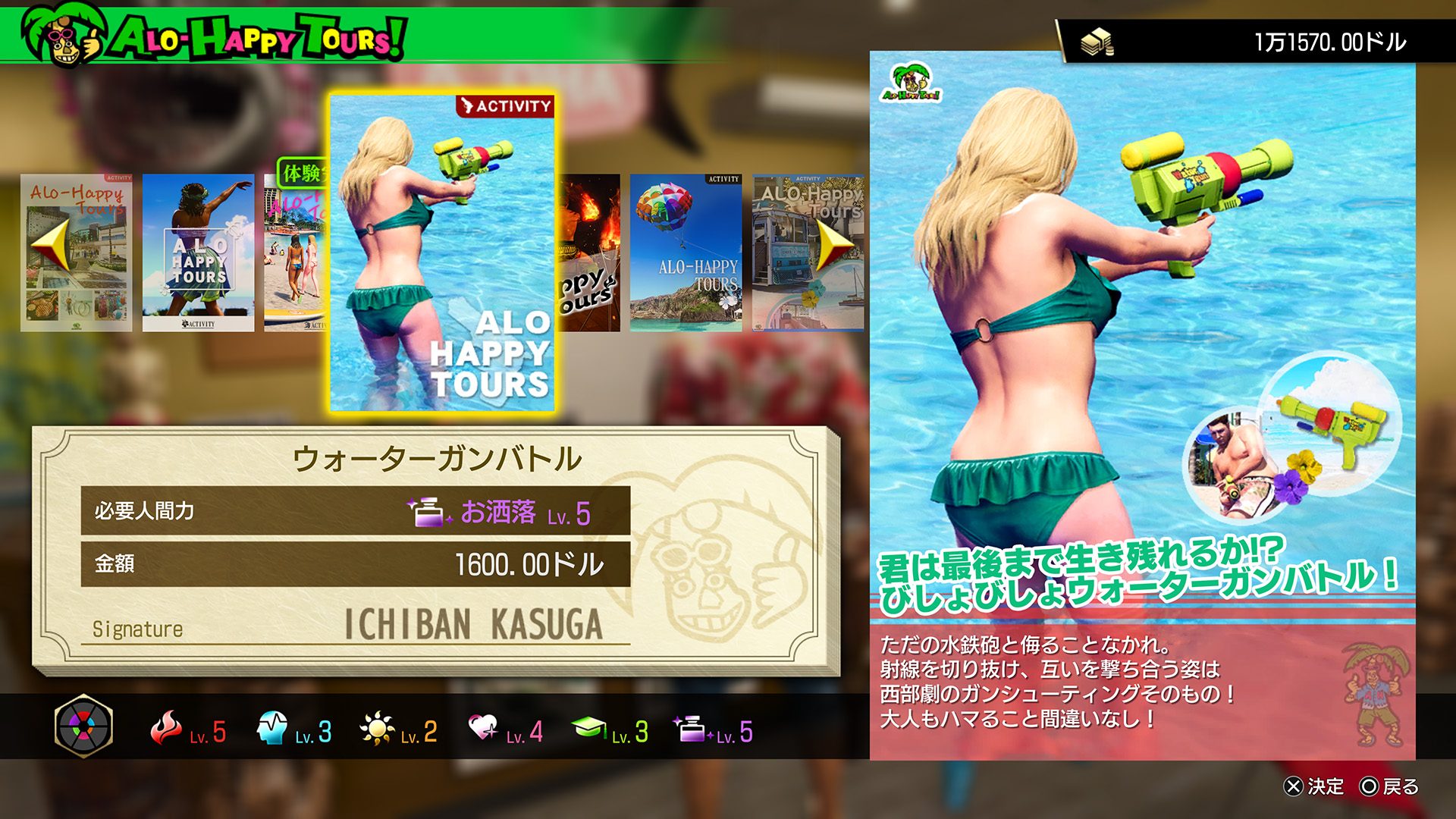 春日の人間力が高まると、ハワイの旅行代理店で「アクティビティ」と呼ばれるさまざまなレジャーを体験できるようになる。このアクティビティを体験することで春日たちはひらめきを得て、新たなバトルのジョブを獲得できる。ほかにも、特別な施設に入れるようになったり、本作のプレイスポット「ドンドコ島」に宿泊客としてハワイの人々を招待できるようになっていく。