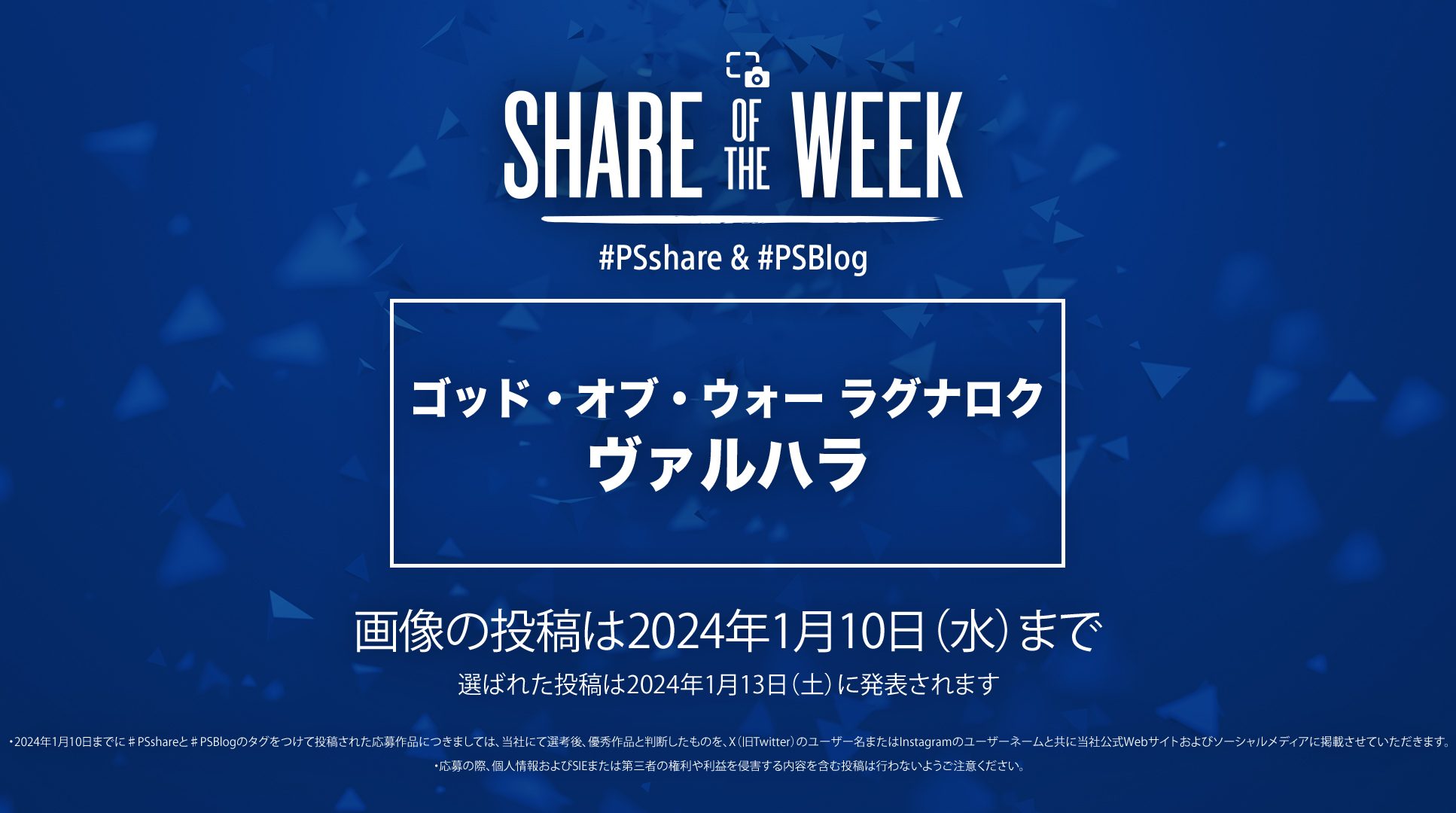 次週のテーマは「ゴッド・オブ・ウォー ラグナロク:ヴァルハラ」! 新たな挑戦とシャッターチャンスが待つヴァルハラへ! お気に入りの瞬間をキャプチャして#PSshareと#PSBlog、ふたつのハッシュタグとともに、1月10日(水)までに投稿してください。あなたの投稿が各国のPS公式メディアから世界中に発信されるチャンスです!