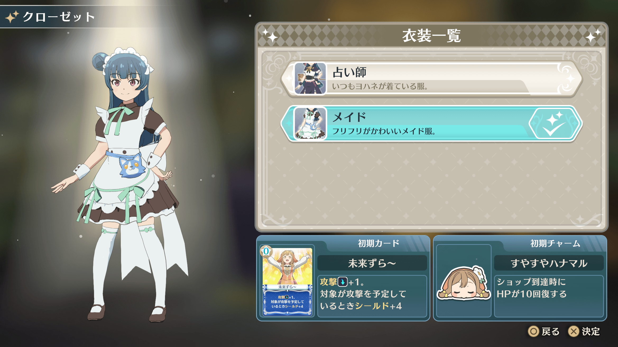 ヨハネの家である占いの館では、衣装の変更や新しいカードのアンロック、能力強化といった一部のカスタマイズも行なえます。