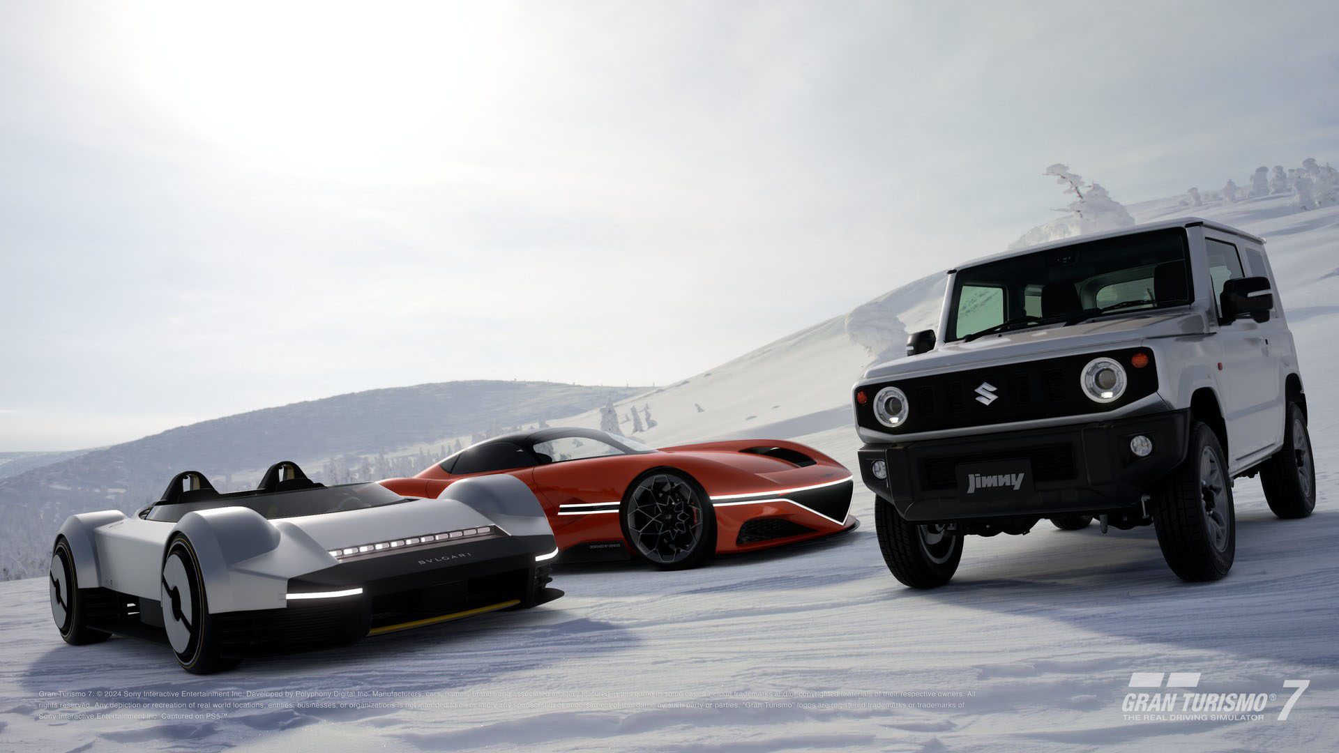本日配信を開始する2024年1月アップデートでは、新規収録車種として「ジェネシス X グラン ベルリネッタ ビジョン グランツーリスモ Concept」「スズキ ジムニー XC ’18」に加え、2月下旬よりブランドセントラルで購入可能となる「ブルガリ アルミニウム ビジョン グランツーリスモ」を追加。カフェのエクストラメニューやワールドサーキットのレースイベント、スケープスの特集が追加されます。