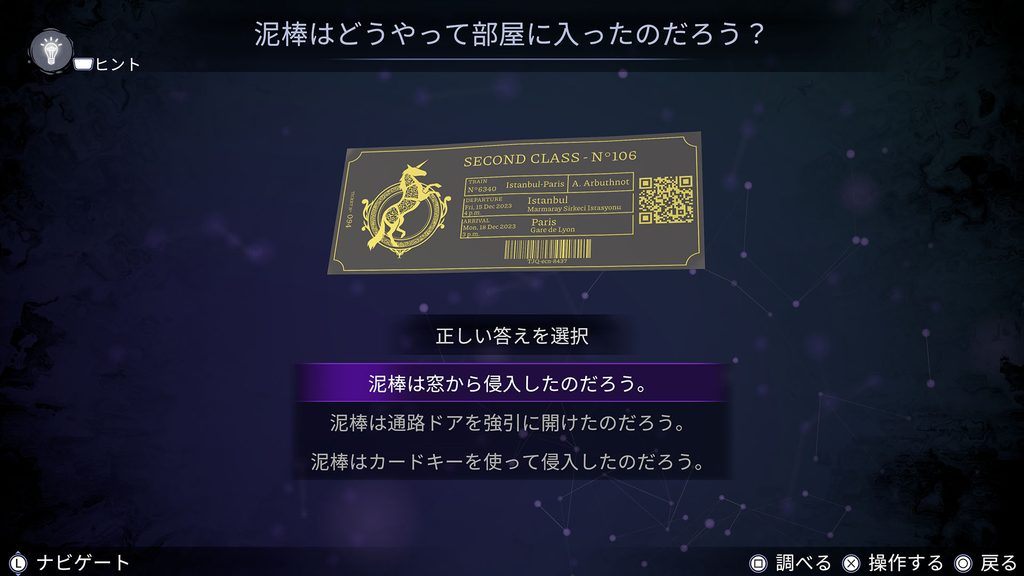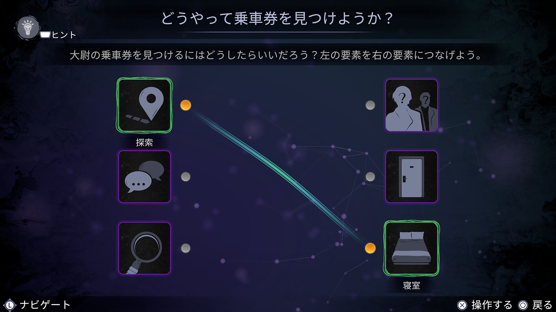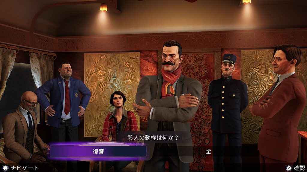 登場人物を分析することも重要だ。周囲の状況を調べ、乗客や列車のスタッフたちと会話しながら情報を集め、容疑者と対峙することになる。