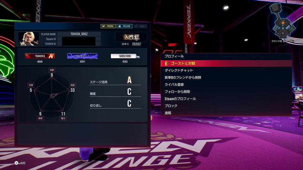 【TEKKEN FIGHT LOUNGE】多数のプレイヤーが集う大規模オンラインビジュアルロビー